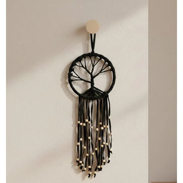 Deze zwarte dromenvanger met Tree of Life combineert traditionele symboliek met een elegante, moderne uitstraling. De levensboom in het midden staat voor groei, verbinding en balans, terwijl de dromenvanger volgens oude tradities negatieve dromen en energieën zou filteren.