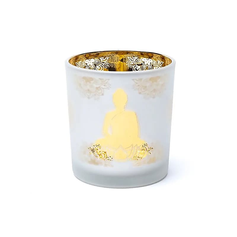 Een sfeervol matglazen lichtje met metallic lotusmotief voor rust en balans. Dit compacte sfeerlicht van matglas met metallic lotusprint verspreidt een warme, zachte gloed zodra je er een theelichtje in brandt. Het subtiele lichtspel versterkt de symboliek van de lotus — een teken van groei, zuiverheid en innerlijke ontwikkeling.
