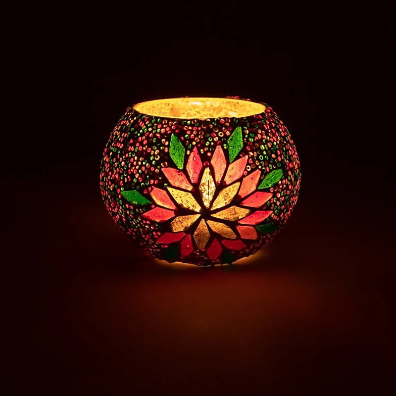 Theelichthouder | Mozaïek Gekleurde Strepen ± 7,5 cm