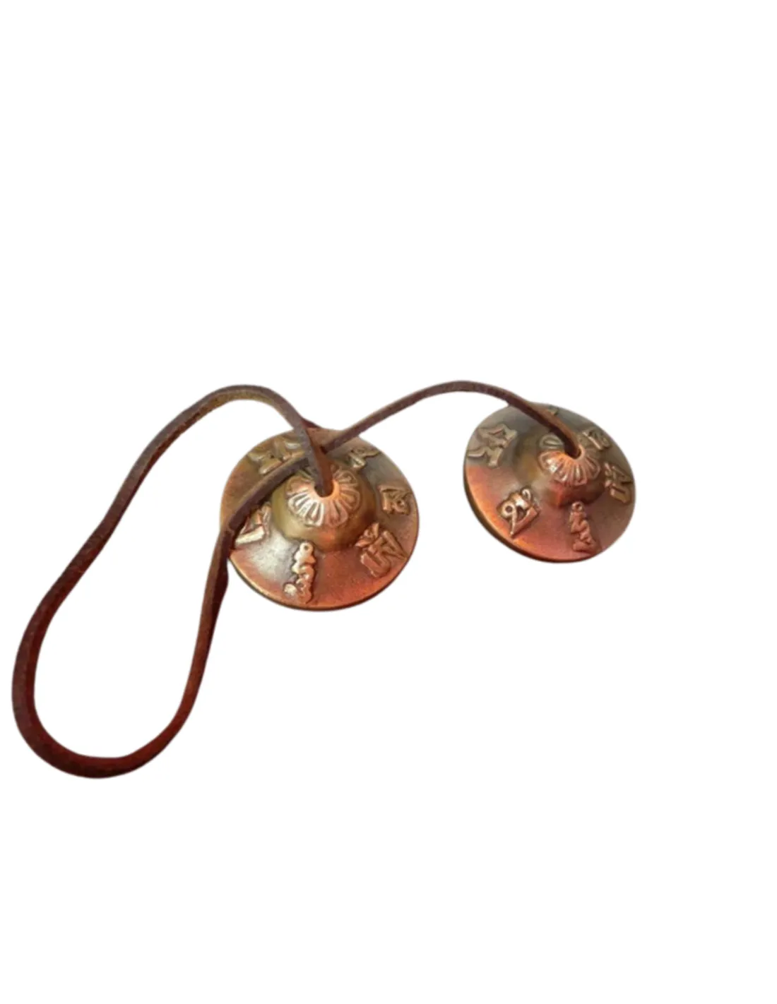 Houd beide tingsha’s losjes vast aan de koorden en laat ze zacht tegen elkaar klinken. Gebruik de klank aan het begin of einde van een meditatie, bij ademhalingsoefeningen, yoga of om een ruimte energetisch te zuiveren. Laat de trilling volledig uitdoven — de stilte daarna is onderdeel van het ritueel.